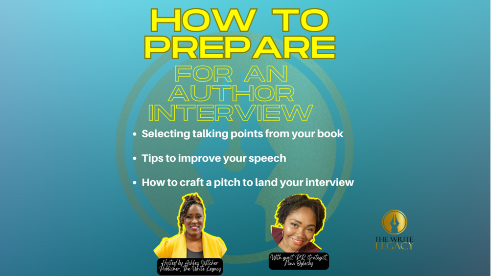 Join Ashley Witcher, owner and CEO of The Write Legacy publishing company, and Nina Oglesby, PR strategist and Intentional Conversationalist, for an engaging virtual workshop: "How to Prepare for an Author Interview." In this informative session, you'll discover essential skills to shine in author interviews. Participants will learn: